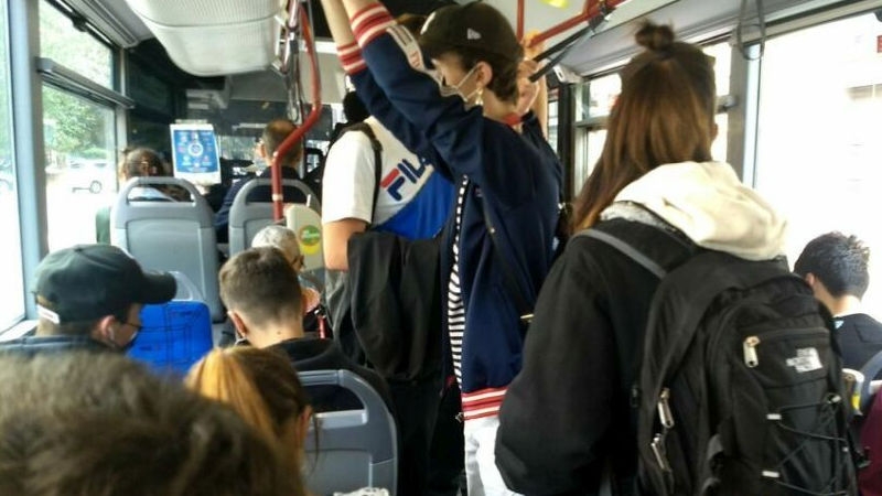 “Oggi – aggiunge – tocca alla linea 2 da Maccarese a Parco Leonardo dove i ragazzi erano stipati come sardine, ma risultano coinvolte anche altre linee del territorio”.