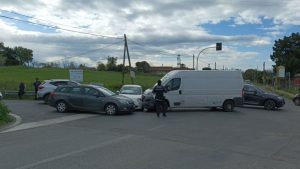 Due autovetture e un furgone, provenienti da tra direzioni di arrivo differenti, si sono scontrate verso le ore 9 di questa mattina. Sul luogo è intervenuta una pattuglia delle Polizia provinciale, una gazzella dei Carabinieri ed una ambulanza (per soccorrere il ferito). Ognuno dei tre conducenti sperava che l’altro si fermasse, non rispettando due segnali di stop presenti.