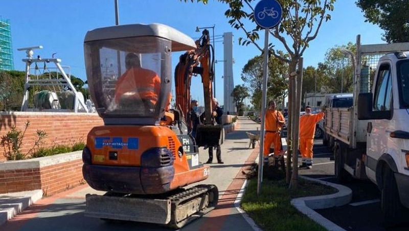 Sono iniziati oggi su Viale Traiano gli interventi di piantumazione dell’area a verde dell’aiuola lungo la strada e la pista ciclabile.