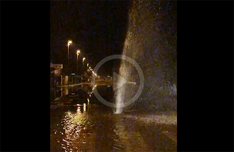 Un “geyser” d’acqua in via Sestri levante, a Fregene. È la scena apparsa nella tarda serata di ieri e causata probabilmente da una rottura di una conduttura idrica, e che di conseguenza ha provocato il grande getto d’acqua dal manto stradale.