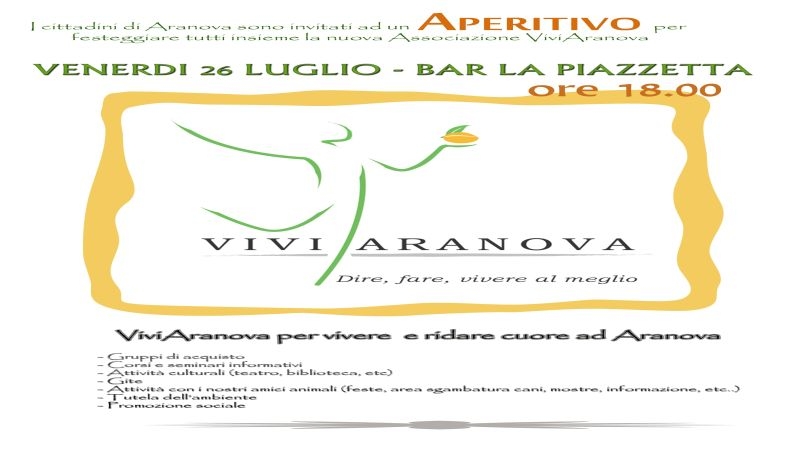 Ad Aranova nasce ViviAranova. Un’associazione culturale con l’obiettivo di creare una vera comunità nella consapevolezza che un futuro migliore sia possibile solo se sostenibile per le persone e per l’ambiente e che la costruzione di questo futuro non possa prescindere dalla valorizzazione della propria località.