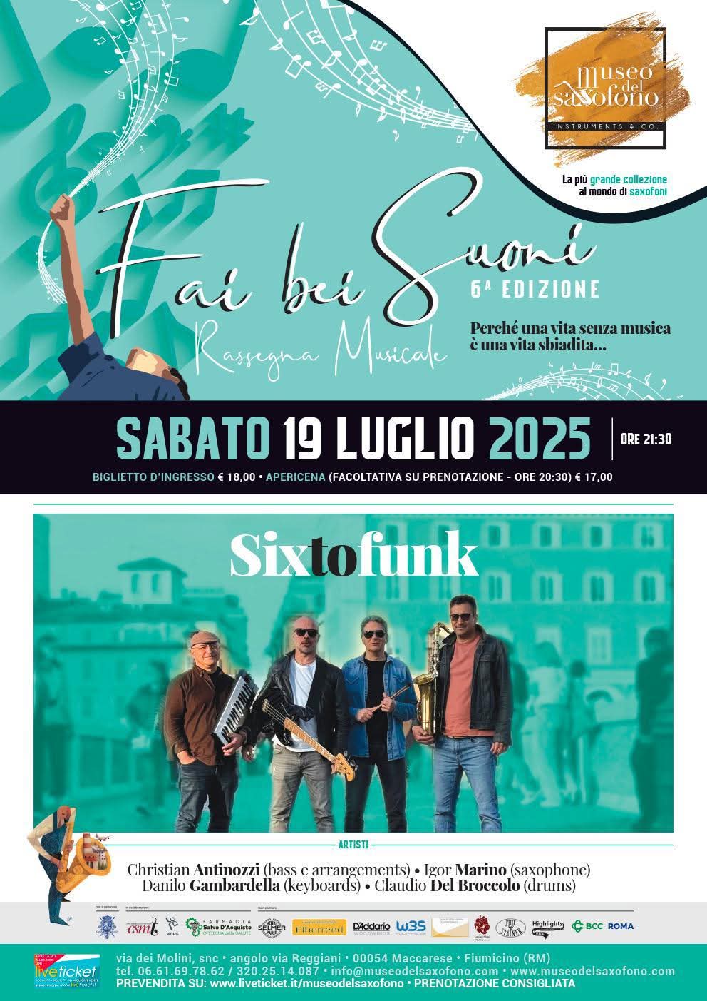 Sabato, alle 21.30, il Museo del Saxofono chiude la rassegna estiva “Fai bei suoni” con il concerto dei “SixtoFunk” : il gruppo romano, nato sotto la guida del bassista e arrangiatore Christian Antinozzi , fonde con originalità l’improvvisazione jazz con le ritmiche travolgenti del funk. Il nome stesso della band è un omaggio al luogo in cui tutto ha avuto inizio: Ponte Sisto, nel cuore di Roma, dove i musicisti si ritrovavano a suonare dal vivo, in strada, a diretto contatto con le persone. Un legame autentico con la città e con il pubblico, che si riflette nel loro stile aperto, comunicativo, mai scontato. I SixtoFunk portano sul palco un suono compatto ma ricco di sfumature, costruito attorno al basso pulsante di Antinozzi, che dopo anni di studio – tra jazz, armonia e contrabbasso – ha sviluppato uno stile musicale personale e riconoscibile. Con lui ci saranno Danilo Gambardella alle tastiere, musicista dal talento precoce e raffinato tocco jazz, Claudio Del Broccolo alla batteria, la cui formazione solida affonda le radici nella tradizione e nell’esperienza live dei festival e Igor Marino al saxofono, apprezzato per la sua versatilità e le tante collaborazioni con grandi nomi della scena jazzistica italiana.