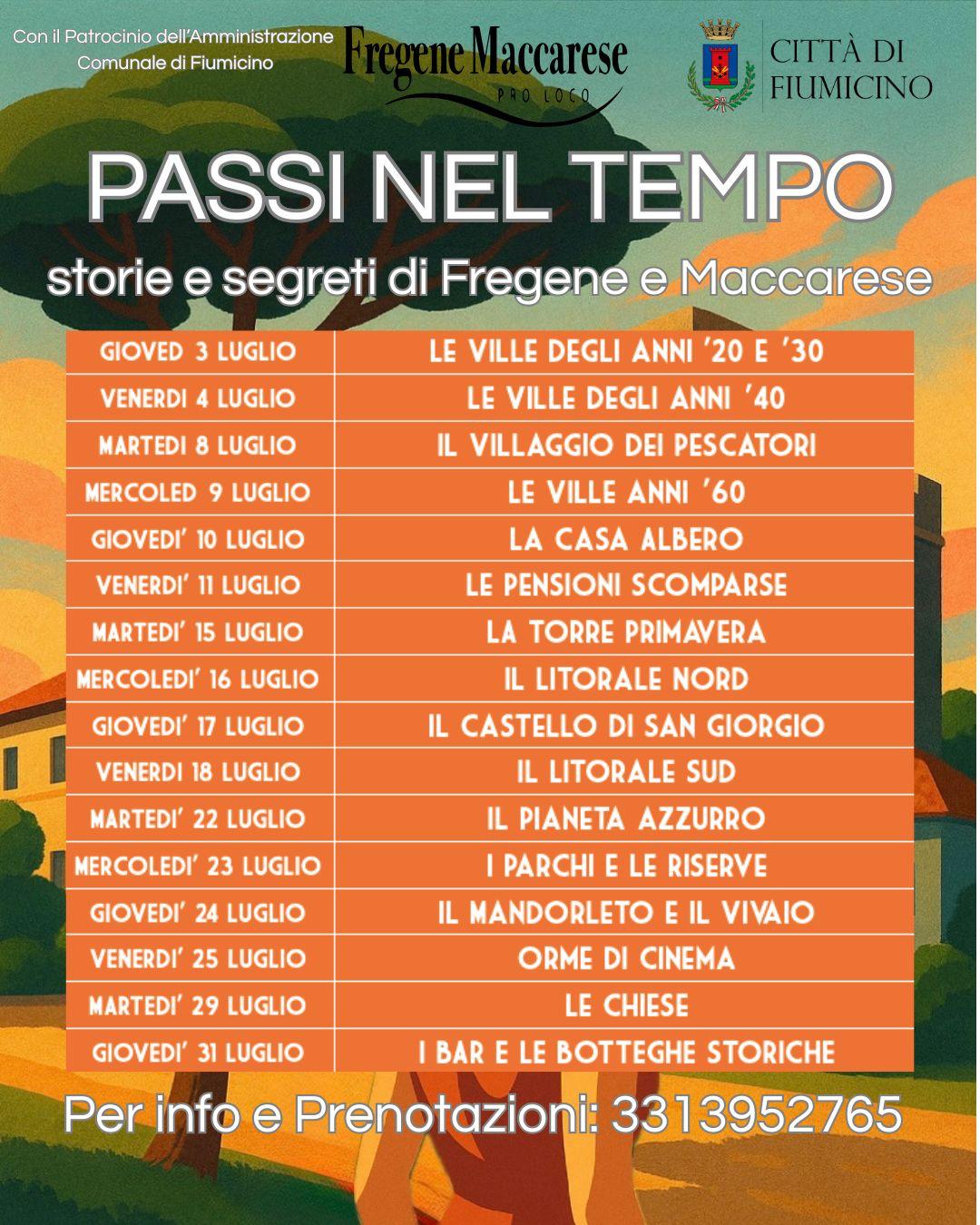 Pronti per un viaggio tra passato e presente? La Pro Loco di Fregene e Maccarese lancia da oggi, giovedì 3 luglio, per l’estate 2025, “PASSI NEL TEMPO – Storie e segreti di Fregene e Maccarese”. Un vero e proprio viaggio nel tempo, con il patrocinio del Comune di Fiumicino.