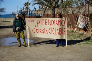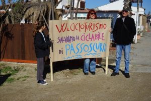 Lunedì 24 marzo il Comune di Fiumicino ha iniziato i lavori di smantellamento della corsia ciclabile di Passoscuro, in Via Ghilarza nella parte più a sud del lungomare. Dopo una prima mobilitazione di martedì 25 marzo, domenica 30 marzo dalle ore 10,00 si è svolto un nuovo incontro – flash mob – presso il ponticello di Passoscuro, cui hanno nuovamente partecipato una cinquantina di cittadini circa, ed al quale ha aderito anche Bravetta Runners, che ha organizzato la “10K del Litorale” che si è svolta in gran parte sul tracciato della stessa pista ciclabile.