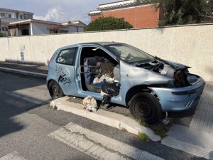 VIA PORTUNNO Su via Portunno, incrocio via Ugo Botti, auto abbandonate piene di rifiuti.