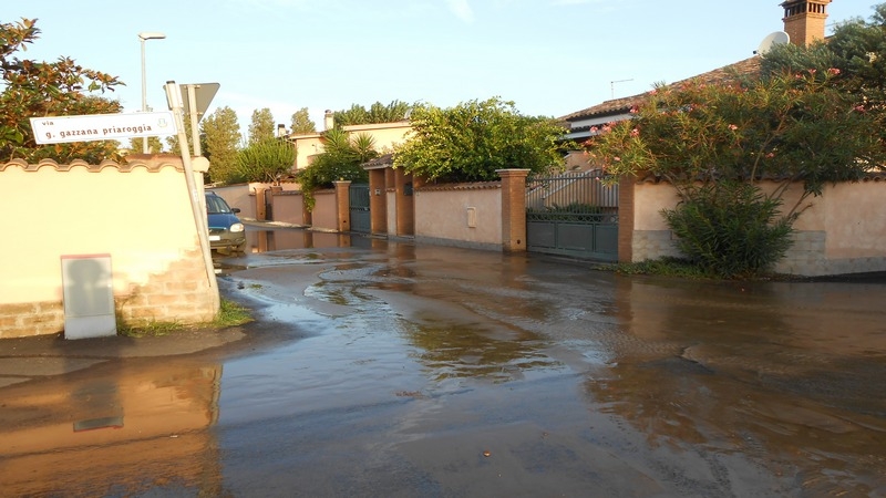Isola Sacra, allagamento Via Lamberti angolo via Priaroggia causa ACEA