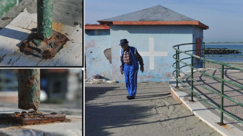 Oggi, durante la passeggiata con il mio papà novantenne, mi ha fatto notare, con occhio vigile, che la balaustra davanti al vecchio pronto soccorso della spiaggia libera sul Lungomare della Salute a Fiumicino, versa in uno stato a dir poco pietoso (vedi foto). Spesso i bambini ci si arrampicano e questo può essere molto pericoloso.