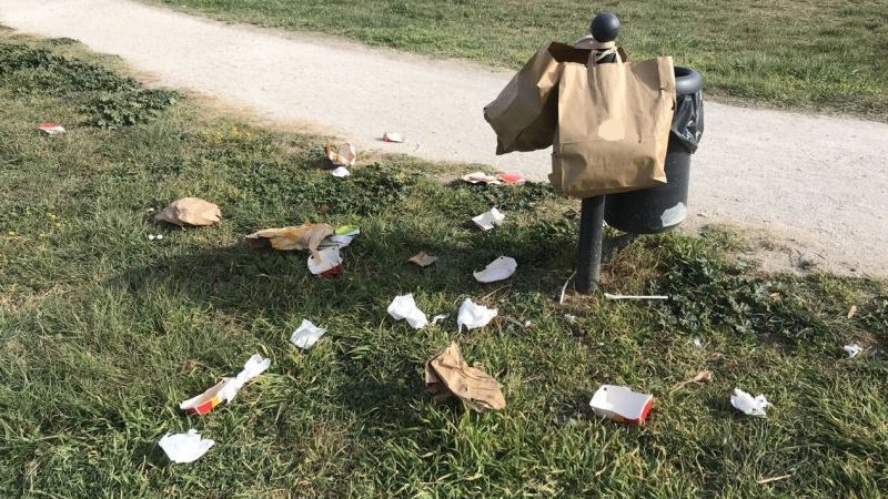 Quello che vedete nella foto scattata nel parco di Villa Guglielmi, questa volta non è dovuto agli immancabili “zozzoni” patentati, ma a certi pennuti che in cerca di cibo estraggono di tutto dai cestini. Basta andare al parco e verificare di persona che in effetti fanno così.