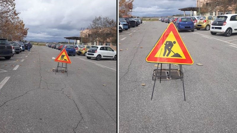 Da oltre una settimana, all’ingresso della scuola di Passoscuro, c’è questo segnale che divide la strada in due, ma nessun lavoro è stato fatto per mettere in sicurezza il tombino.