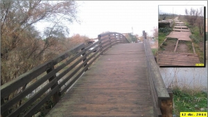 Molte assi in legno sono rotte o divelte e ciò comporta un problema reale di pericolosità per la sicurezza ed incolumità dei cittadini. Avevo chiesto, in attesa dei lavori di riparazione comunque necessari, di recintare la zona interessata, ponte e passerella, al fine di evitare che qualcuno potesse farsi del male.