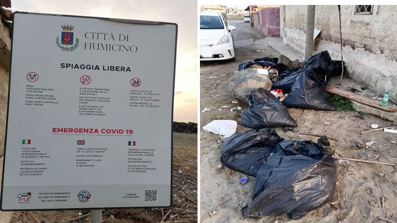 Come si può leggere sul cartello c’è scritto “Spiaggia Libera … Emergenza Covid 19” ma forse sarebbe il caso di scrivere “Spiaggia Libera … Emergenza Rifiuti”.