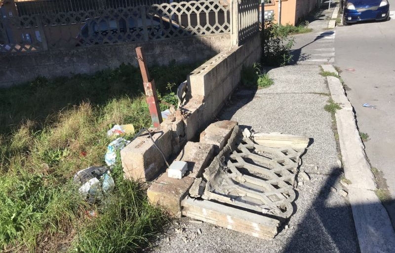 Voglio fare questa segnalazione perchè è ormai da oltre due settimane che il muro di cinta dell’abitazione, che fa angolo tra via della Torre Alessandrina e via dei Nocchieri, è caduto invadendo completamente il marciapiede.