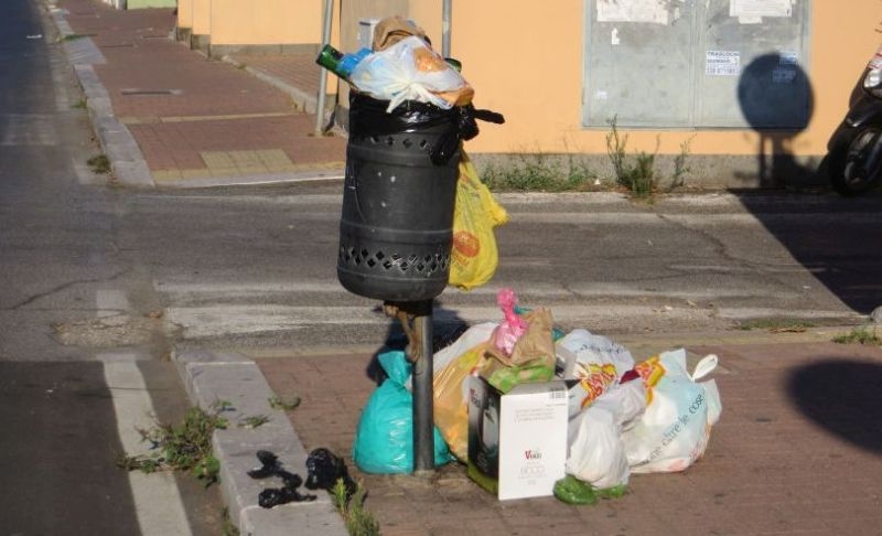 Tutte le mattine è la stessa cosa, sempre una marea di buste di rifiuti accantonati accanto al cestino posizionato su via delle Meduse angolo via del Portico Placidiano, a Fiumicino.