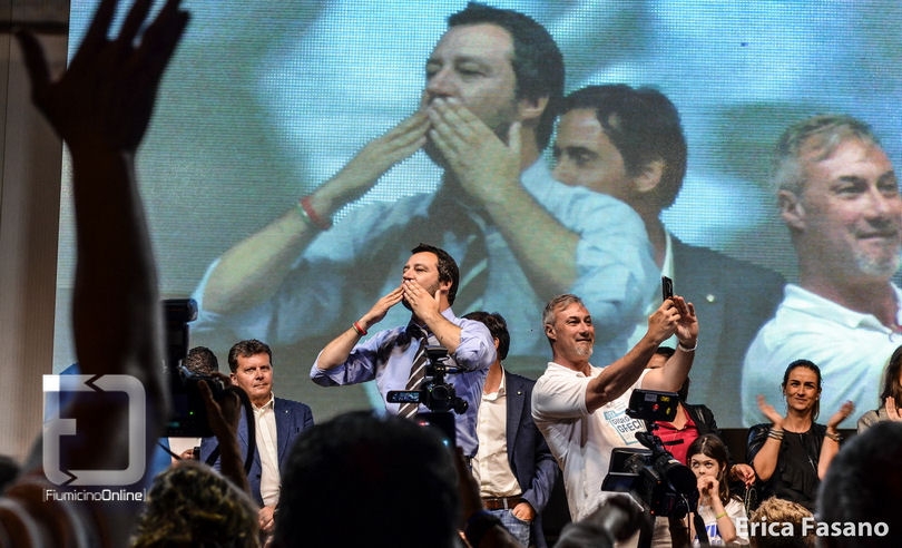 Dopo l’intervento del Ministro degli Interni, concluso il comizio nella Darsena portuale, tra rigide misure di sicurezza. Per Matteo Salvini è stato un bagno di folla “ravvicinato” quello di questa sera a Fiumicino, dove alla fine del comizio decine e decine di persone sono state fatte salire sul palco, dove il vice premier si è concesso per lungo tempo, con ognuna, più selfie e strette di mano.