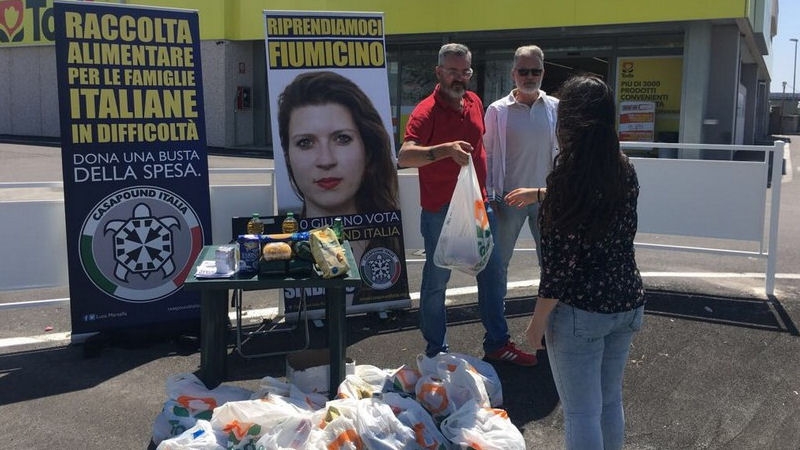 Anche stamattina i volontari di CasaPound hanno raccolto generi alimentari fuori dai supermercati di Fiumicino.