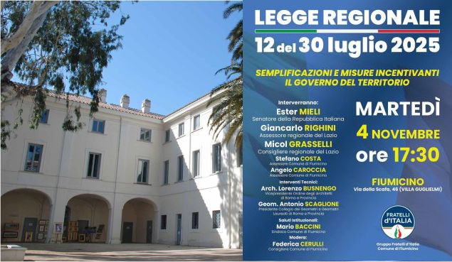 “L’incontro rappresenta un’occasione aperta alla cittadinanza per conoscere da vicino le implicazioni della nuova legge, confrontarsi con istituzioni e tecnici e comprendere come gli strumenti introdotti potranno incidere su Fiumicino e sul territorio circostante – dichiara il Gruppo Consiliare di Fratelli d’Italia Fiumicino – La presenza di referenti istituzionali e professionisti del settore offrirà un valore aggiunto a chi desidera approfondire gli aspetti tecnici e le opportunità concrete che la normativa apre”.