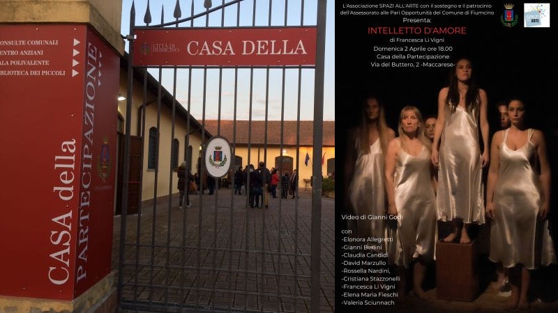 Domenica 2 Aprile alle 18.00, presso la Casa della Partecipazione di Maccarese, sarà in scena lo spettacolo “Intelletto d’Amore” di Francesca Li Vigni, realizzato in collaborazione con l’associazione Spazi all’arte e patrocinato dall’assessorato alle Pari Opportunità.