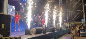 Scatenato il vocalist Lele Sarallo, non da meno il Jj Bibi Gismondi ed i ballerini, tra i quali spiccava il mitico Super Mario Bros, che hanno offerto una performance esaltante e contagiosa per tutti i presenti, tra i quali l’Assessore alla Cultura ed al Turismo Federica Poggio ed il Direttore Artistico di “Notti D’estate 2024”, Massimo Guelfi.