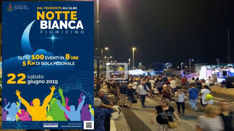 Conto alla rovescia per la “Notte Bianca” di sabato 22 giugno a Fiumicino dove si terranno oltre 138 eventi in tutta la città. Dalla mattina fino a notte fonda, le principali vie di Fiumicino e Isola Sacra ospiteranno spettacoli, esibizioni, musica, sport, degustazioni e tanto altro.