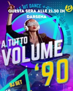 Questa sera in Darsena “A Tutto Volume – Anni ’90” Una serata per rivivere i successi dance più iconici del decennio