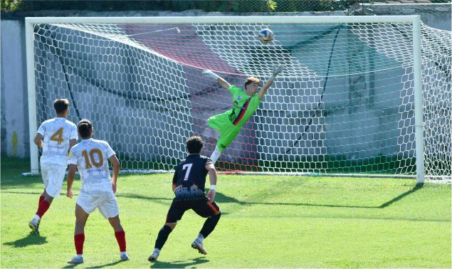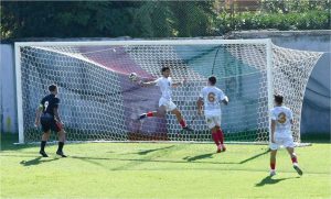 Il confronto con il Fiumicino si apre all’insegna dell’equilibrio che viene interrotto da un preziosismo balistico del centrocampista Franchi il quale sigla la rete del vantaggio (nella foto) direttamente su calcio di punizione dal limite.
