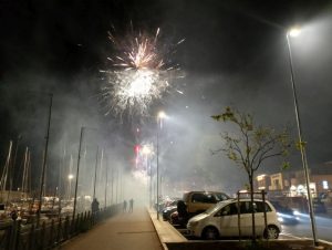 Fuochi pirotecnici un pò ovunque, una mezz’ora di caroselli e poi tutti in darsena per cantare insieme