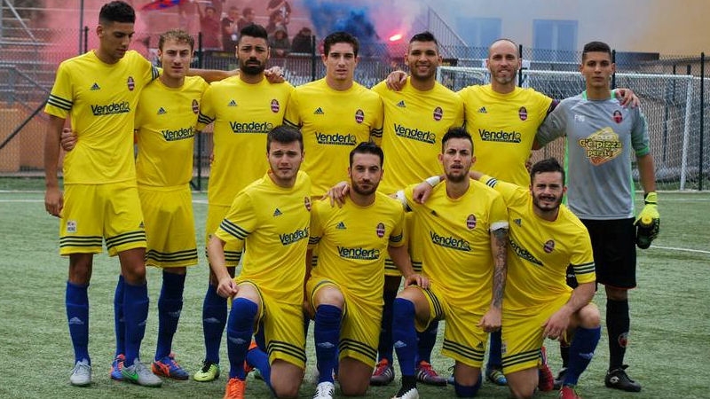 LA PARTITA I tifosi cantano, sembra di stare al Desideri e non fuori casa. Natalini deve fare a meno di Pischedda ed Ergottino infortunati. In porta Greco, dietro Amico, Stendardo, Paoliello e D’Auria. Centrocampo a tre con Fontana, Benedetti, Bornino. In avanti Forcina, Bordoni, Fiorini. Partono meglio i rossoblù che controllano e provano l’affondo. Il primo acuto è di Fiorini: D’Auria la mette dentro, l’esterno la tocca in porta. Sembra gol ma la GdF la salva sulla linea. I padroni di casa si fanno vedere in mischia, poi a un minuto dal 45esimo rimangono in dieci per un fallaccio su D’Auria.