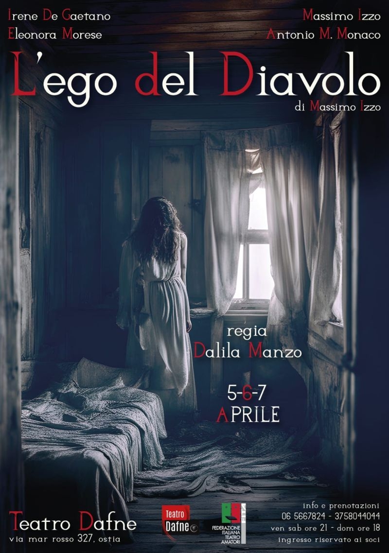 E se invece non fosse così? Se il diavolo fosse rimasto ancora in quella casa? Il primo horror teatrale della Compagnia, “L’Ego del Diavolo”, sarà in scena al Teatro Dafne di Ostia venerdì 5, sabato 6 e domenica 7 aprile, per la regia di Dalila Manzo.