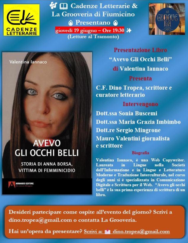 #CadenzeLetterarie #AvevoGliOcchiBelli #ValentinaIannoco #AnnaBorsa #Femminicidio #ParoleCheRestano #Verità #Giustizia #LaGrooveria #DinoTropea #EventoCivile #LibriCheParlano #NonUnaDiMeno