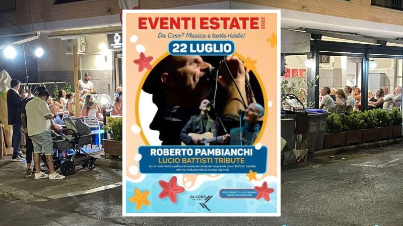 Venerdì 22 luglio, alle ore 21 al Bar Gelateria “Da Coso” via delle Meduse 174 (Fiumicino), tanta musica dal cielo al cuore con “Lucio Battisti Tribute”.