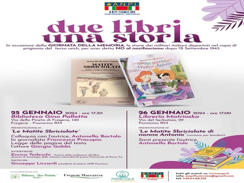 Due libri, un’unica storia: Matite sbriciolate (Rubbettino 2018) e Le matite sbriciolate di nonno Antonio (Voglino Editore 2023). E’ la proposta editoriale che Antonella Bartolo Colaleo presenterà dal 23 al 26 gennaio nel corso di un tour romano in occasione delle celebrazioni per il Giorno della Memoria 2024.