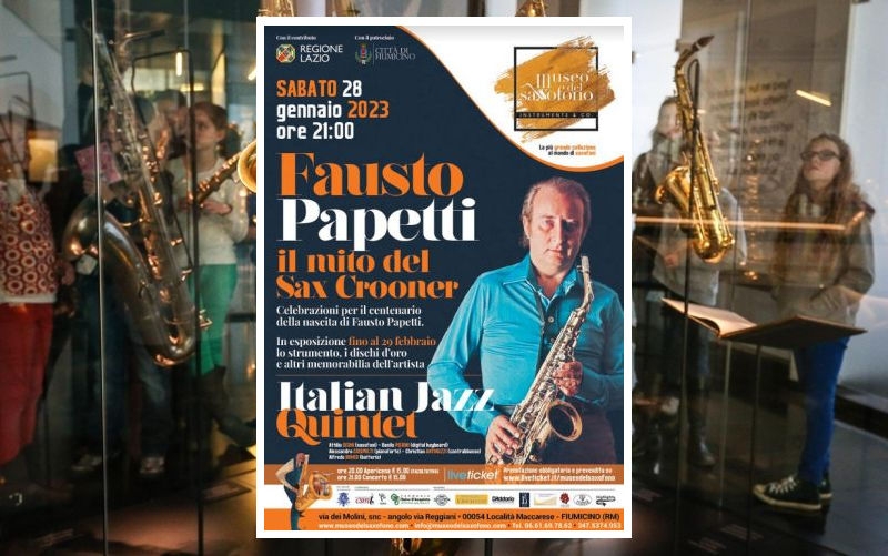 Il Museo del Saxofono di Fiumicino rende omaggio al grande saxofonista italiano Fausto Papetti, del quale il prossimo 28 gennaio ricorre il centenario della nascita. Dal 28 gennaio al 25 febbraio, nella sede museale a Maccarese, ci saranno una mostra dello strumento appartenuto all’artista e di altri memorabilia concessi dalla famiglia erede, oltre a concerti e visite guidate.