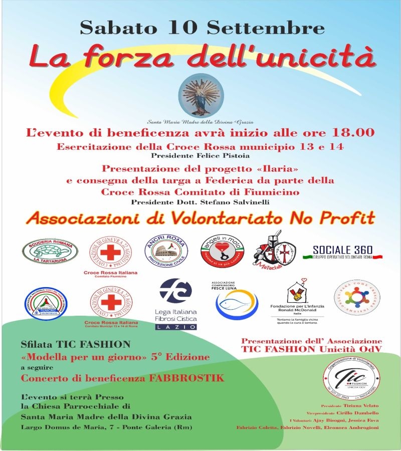 “Come Associazione Comprensorio Pesce Luna siamo onorati di essere stati invitati a collaborare con l’Associazione TIC FASHION Unicità, ODV organizzatrice dell’evento ‘La Forza dell’Unicità’ in programma sabato 10 settembre presso la Chiesa Parrocchiale di Santa Maria Madre della Divina Grazia largo Domus de Maria 7 a Ponte Galeria” lo dichiara Giampiero Rossi, presidente dell’associazione Comprensorio Pesce Luna.