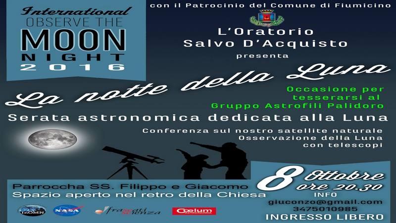 Una breve conferenza sul nostro satellite naturale, tenuta dal presidente del Gruppo Astrofili Palidoro, Giuseppe Conzo, renderà con le sue spiegazioni, la serata ancora più interessante. Una serata in cui verrà presentata l’Associazione Gruppo Astrofili Palidoro da poco costituita, infatti ci sarà, per chi vorrà, la possibilità di tesserarsi e diventare socio.