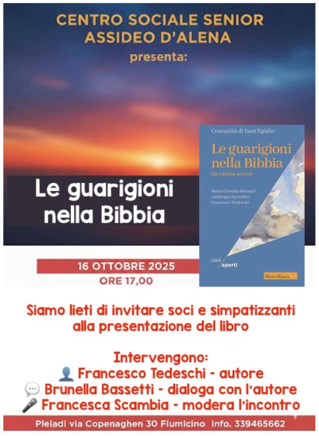 Domani, giovedì 16 ottobre alle ore 17.00, presso il Centro Sociale Senior “Assideo D’Alena” (Via Copenaghen 30 – Le Pleiadi), prenderà il via la nuova stagione letteraria, aperta a soci e simpatizzanti.