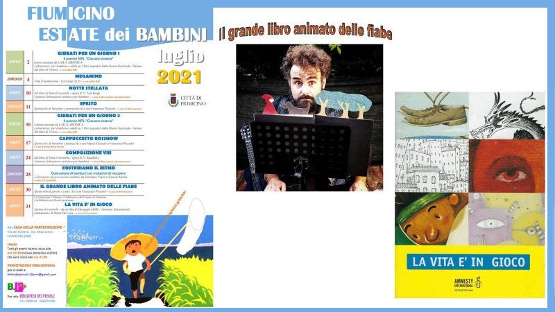 Le prossime iniziative, organizzate dalla Biblioteca dei Piccoli di Maccarese, ci saranno venerdì 30 luglio e sabato 31 luglio, alle ore 18.00, con ingresso gratuito e prenotazione obbligatoria all’indirizzo email bibliodeipiccoli.10anni@gmail.com