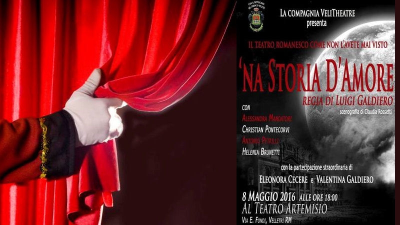 Domenica 8 maggio 2016 alle ore18:00, presso il Teatro Artemisio di Velletri, fiore all’occhiello della Cultura veliterna, Luigi Galdiero, maestro e “penna d’eccellenza” nelle tematiche della Romanità, presenta ‘Na storia d’amore, spettacolo patrocinato dal Comune di Velletri e curato nei minimi dettagli per le scenografie di Claudia Rossetti.