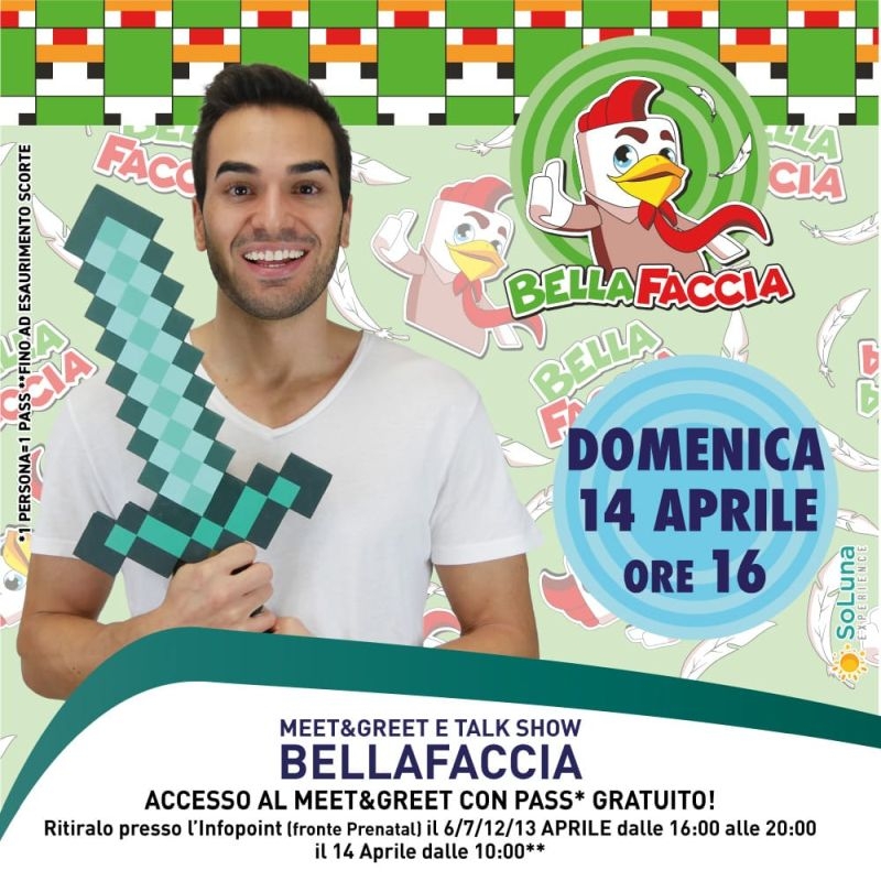 Il Meet&Greet e il Talk Show con lo YouTuber si svolgeranno domenica 14 aprile dalle ore 16.00 presso l’area eventi fronte Terranova. Per salire sul palco è necessario ritirare il pass gratuito (1 pass a persona) presso il nostro infopoint (situato di fronte al punto vendita Prenatal) nelle seguenti giornate 6, 7, 12 e 13 Aprile dalle 16.00 alle 20.00 e domenica 14 aprile dalle 10.00 fino a fine disponibilità.