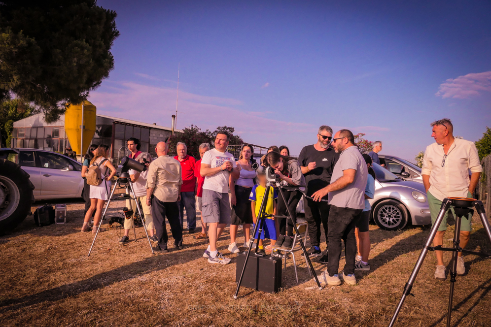 L’iniziativa, dedicata all’osservazione del Sole al tramonto e di Marte in notturna, ha rappresentato un’occasione imperdibile per avvicinarsi all’astronomia in maniera diretta, coinvolgente e accessibile a tutti. Con l’ausilio di telescopi professionali e sotto la guida esperta di divulgatori e appassionati del cielo, i partecipanti — dai bambini più curiosi agli adulti più appassionati — hanno potuto osservare in sicurezza il Sole nella fase terminale della giornata, cogliendone dettagli sorprendenti come le macchie solari e la granulosità della fotosfera. L’osservazione è proseguita dopo il tramonto con il protagonista indiscusso del cielo estivo: Marte. Il “pianeta rosso” ha catturato gli sguardi e l’immaginazione, accompagnato da spiegazioni scientifiche sui suoi moti, la sua atmosfera sottile, le missioni spaziali in corso e le recenti scoperte che ne fanno uno dei corpi celesti più studiati del nostro Sistema Solare. Tutto arricchito con ottimi prodotti della Fattoria Rinaldi.