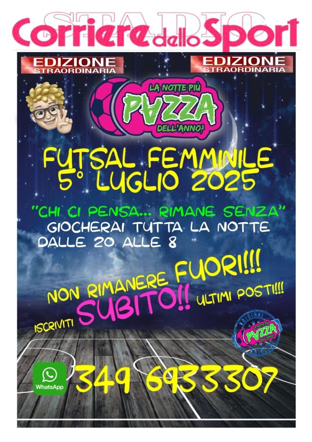 Sta per tornare anche quest’anno la notte più lunga e pazza di Fiumicino. Si terrà infatti il prossimo 5 luglio la sedicesima edizione de “la notte più pazza dell’anno”, dedicata al Futsal femminile.