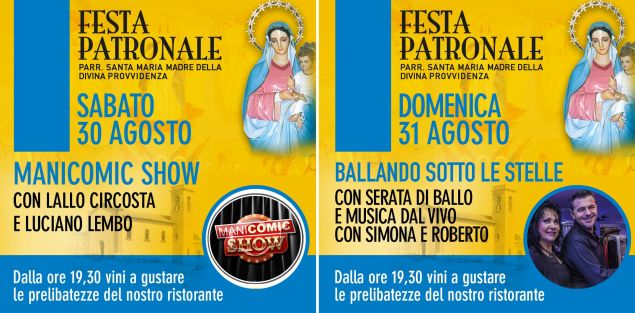 Questa sera sabato 30 agosto, nel campo sportivo parrocchiale, alle 21, sul palco arriva il “Manicomic Show”, con Lallo Circosta e Luciano Lembo.