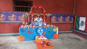 E’ stato allestito un “altare” dove, tra un multicolore scintillio di fiori, colori, candele, manifesti, simboli del sincretismo preispanico cui la festa si riferisce, hanno trovato accoglienza le foto dei defunti di chi è stato presente all’evento, mentre i bambini seduti in un lato del bellissimo giardino dei Liocorni, assistevano al Film Disney “Coco” che ben rappresenta il valore e il significato di questa ricorrenza.