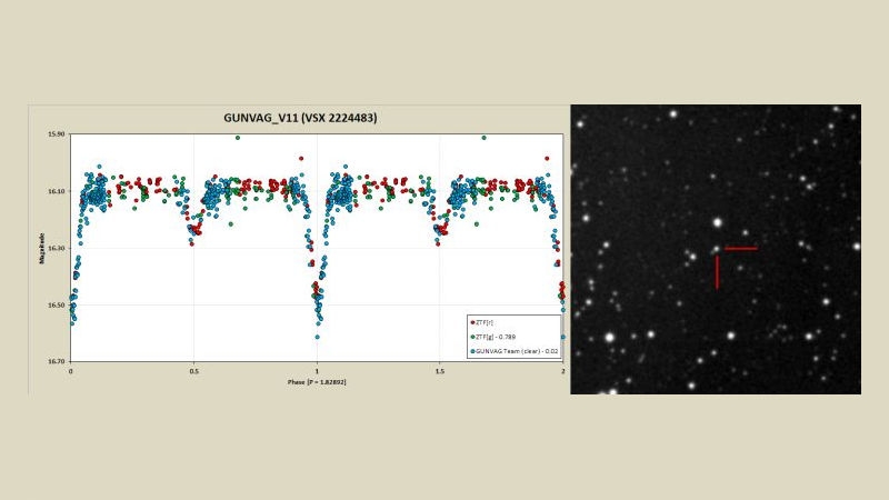 La scoperta di questo sistema binario denominato “GUNVAG_V11” è consultabile nel database internazionale delle stelle variabili (VSX) al seguente link https://www.aavso.org/vsx/index.php?view=detail.top&oid=2224483