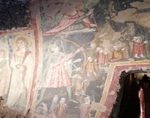 Il Mitreo, che si ipotizza possa essere stato realizzato ben 2.600 anni fa, scavato nella parete tufacea, fu inizialmente una sepoltura multipla, con volta a botte fortemente ribassata. Venne poi ampliato per essere adibito a luogo di culto dedicato all’orientale dio Mitra. Successivamente venne trasformato in una cappella votiva cristiana, dedicata a San Michele Arcangelo e poi alla Madonna del Parto. All’interno sono visibili affreschi di differenti epoche (alcuni del trecento).