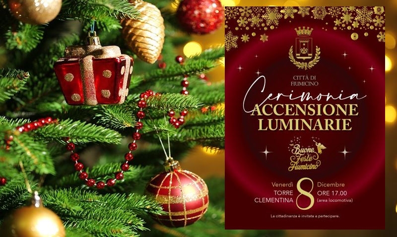 Con una cerimonia venerdi 8 dicembre, alle ore 17, in via Torre Clementina, nei pressi della Locomotiva antica, saranno accese a Fiumicino le Luminarie natalizie alla presenza del Sindaco Mario Baccini e degli assessori e consiglieri comunali. Nell’area del Borgo Valadier ci sarà un villaggio natalizio.