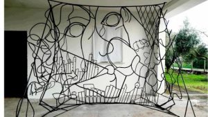 Altro materiale che accompagna da sempre la sua ricerca è il ferro, forgiato con forza e dedizione, senza aver mai frequentato scuole specializzate. La sua abilità è frutto di un talento manuale innato e di un acuto spirito di osservazione. Proprio dal ferro è nata una delle sue opere più intense: Pandemica, una scultura in ferro battuto, alta circa 2 metri e larga 2,5. Realizzata durante il lockdown, l’opera esprime in modo potente e viscerale la complessità del genere umano in uno dei momenti più delicati della storia recente. Una struttura che non impone significati, ma invita a riflettere sul senso dell’isolamento, della fragilità e della resistenza.
