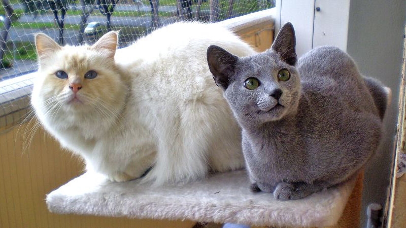 “Ciao, io sono Axel il peloso chiaro Sacro di Birmania e il peloso raso scuro è Puk un Blu di Russia. Ci siamo conosciuti durante una mostra felina perché eravamo vicini di stand e cosi’ anche i nostri padroni. Mentre noi siamo due bei maschietti, i nostri rispettivi padroncini sono Laura per me e Massimiliano per Puk. Tra loro due è stato amore a prima vista e di conseguenza la nostra amicizia è diventata inevitabile perché ora la famiglia si è allargata! Stiamo sempre insieme, stiamo bene, e siamo molto contenti e coccolati”.