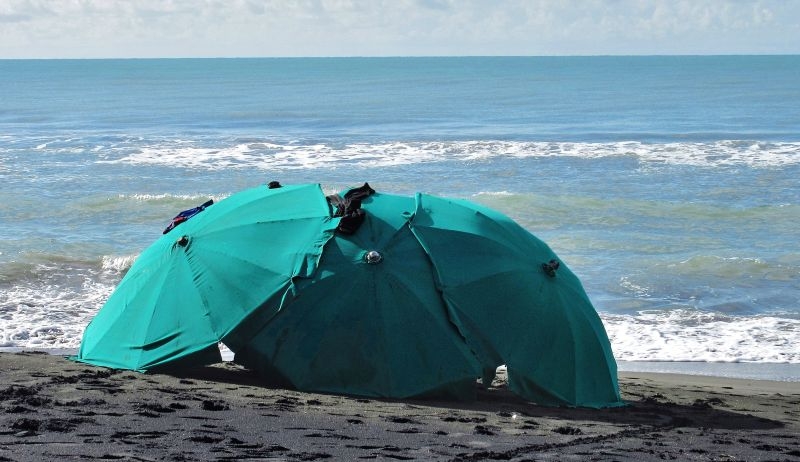 La fantasia poi non manca e lo dimostrano questi tre ombrelloni verdi sulla sabbia messi in modo da farne un riparo, ma chi c’è sotto? Un uomo adulto che con il costumino era sdraiato al riparo dall’aria marina e con i raggi solari concentrati su di lui. Una buona idea per i nostalgici della calda stagione ma che, purtroppo per loro, tornerà solamente tra molti mesi.