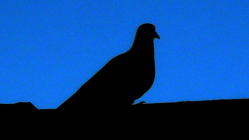 Era verso sera e, in controluce, quasi tutti i soggetti risultano molto scuri e di un certo effetto. Io ho voluto aggiungere un pò di blu intenso al cielo per dare maggiore risalto all’armoniosa figura di questo piccione.