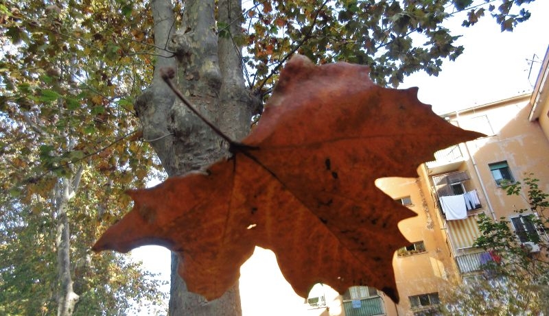 Qualche mese fa è stata certamente una bellissima grande foglia verde che assieme alle altre ha ricoperto i rami degli alberi che, ai lati strada, hanno donato ombra nei momenti più caldi dell’estate e tanto ossigeno durante il giorno.
